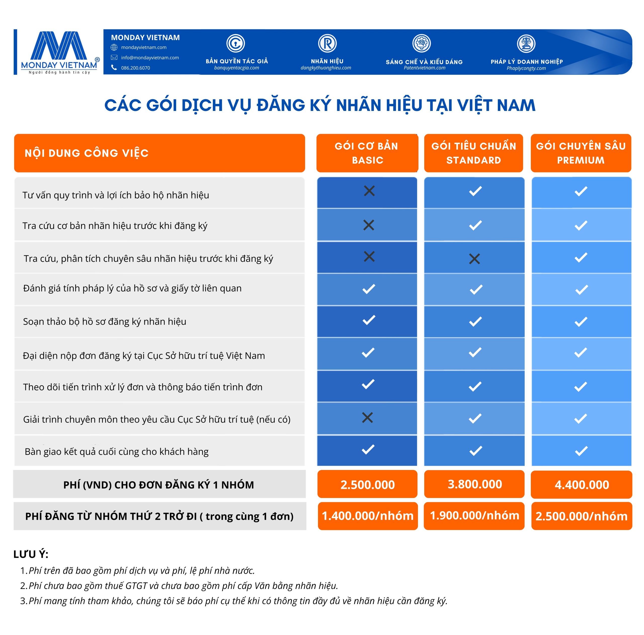 Phí dịch vụ đăng ký nhãn hiệu tại Monday VietNam