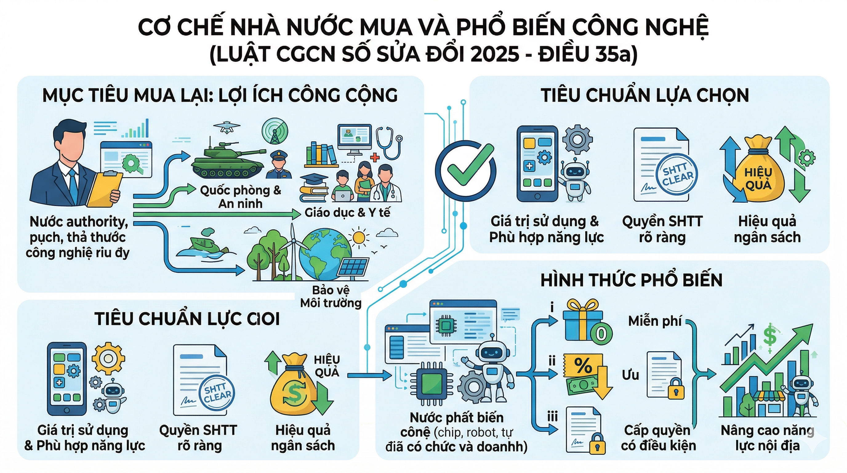 - Mục tiêu mua lại: Ưu tiên công nghệ phục vụ quốc phòng, an ninh, giáo dục, y tế, bảo vệ môi trường, phòng, chống thiên tai, dịch bệnh.