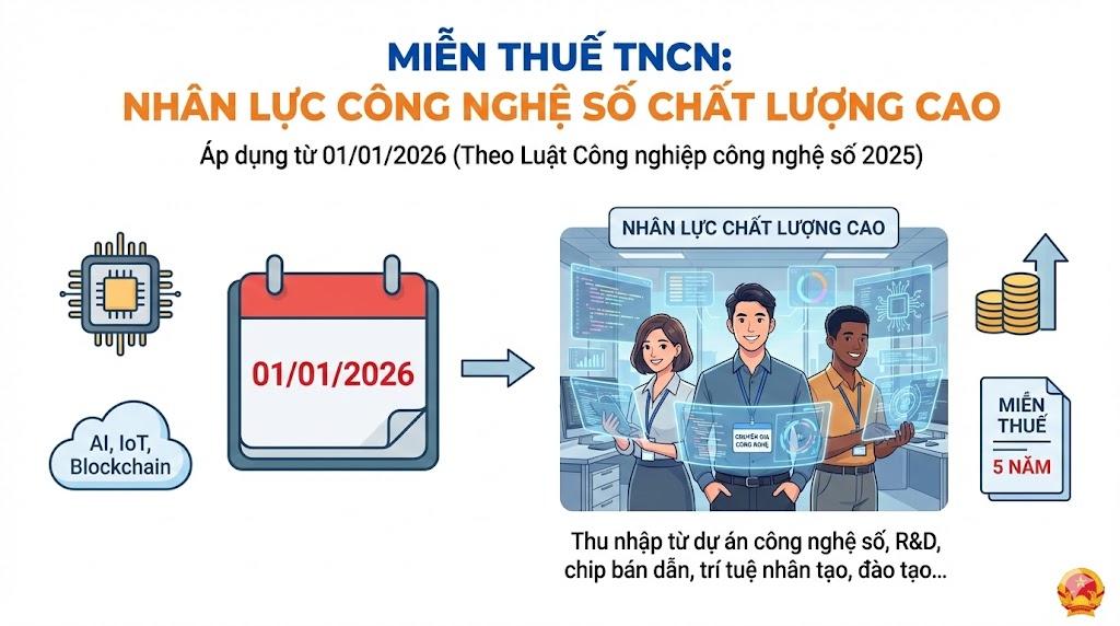 3. Miễn thuế thu nhập cá nhân đối với nhân lực công nghiệp công nghệ số chất lượng cao từ 01/01/2026