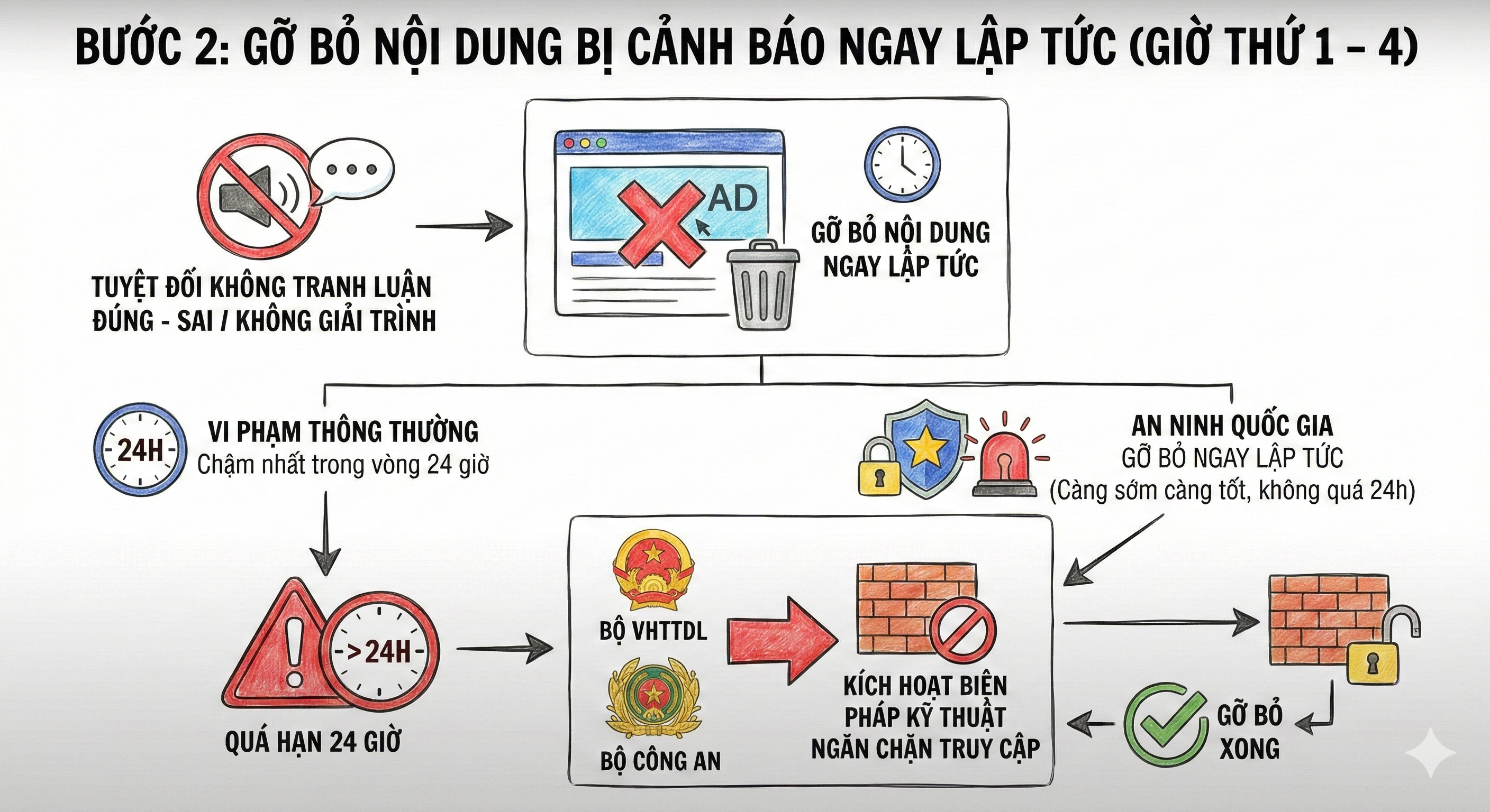Bước 2: Gỡ bỏ nội dung bị cảnh báo ngay lập tức (Giờ thứ 1 – 4)